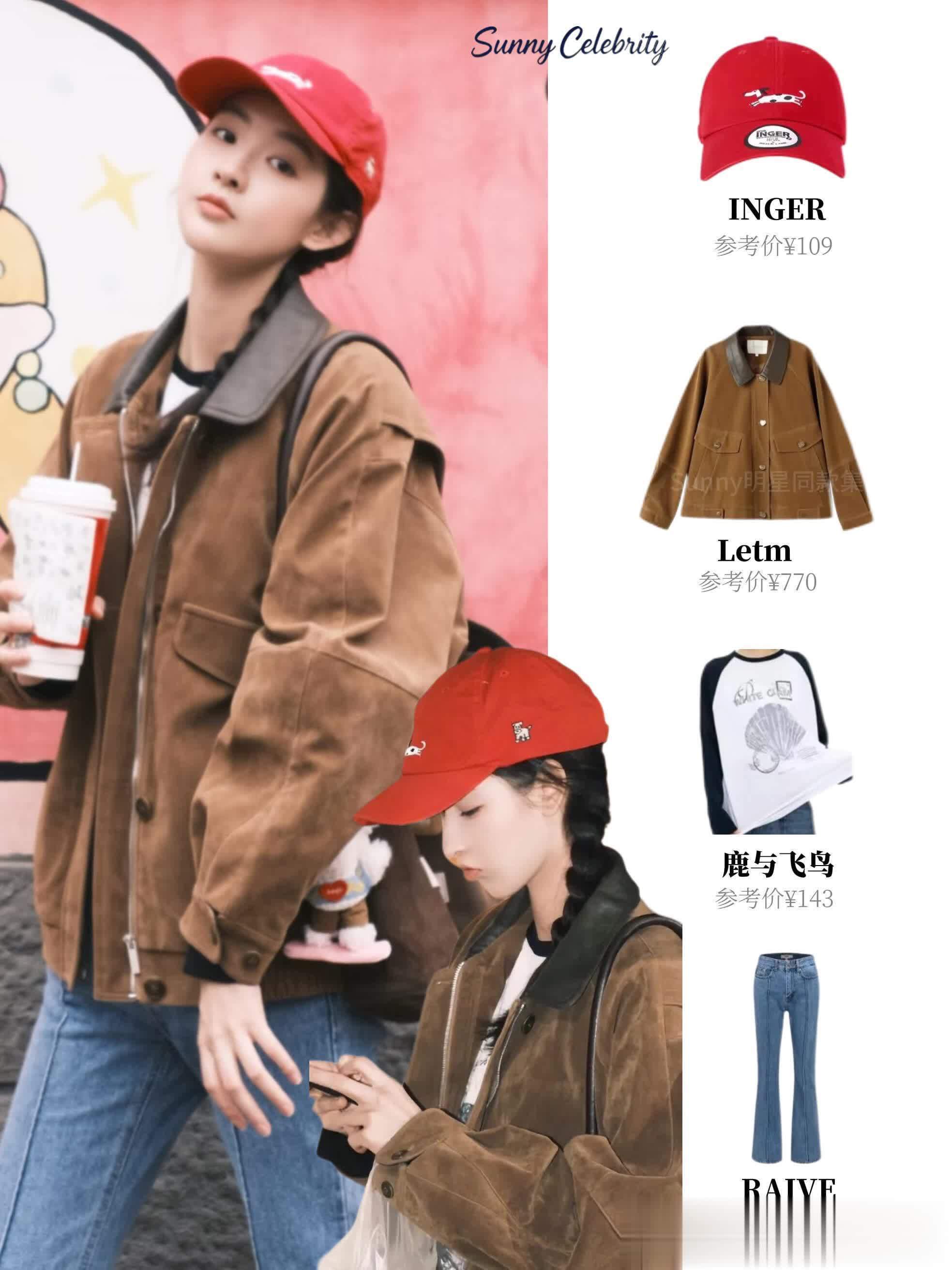 她还有套“工装夹克+棒球帽+牛仔裤”的搭配,把“美式复古感”焊在身上了!棕色工装夹克是灯芯绒材质,复古又显质感,领口和口袋的细节设计特别戳人,里面搭件简单的白T,干净又清爽。下半身配同色系牛仔裤,裤脚卷两圈露出脚踝,踩双小白鞋,戴顶红色棒球帽,瞬间有了青春校园那味儿~挎个帆布包,去逛市集或者看livehouse,被夸“你这穿搭好有少年感,又A又飒”~