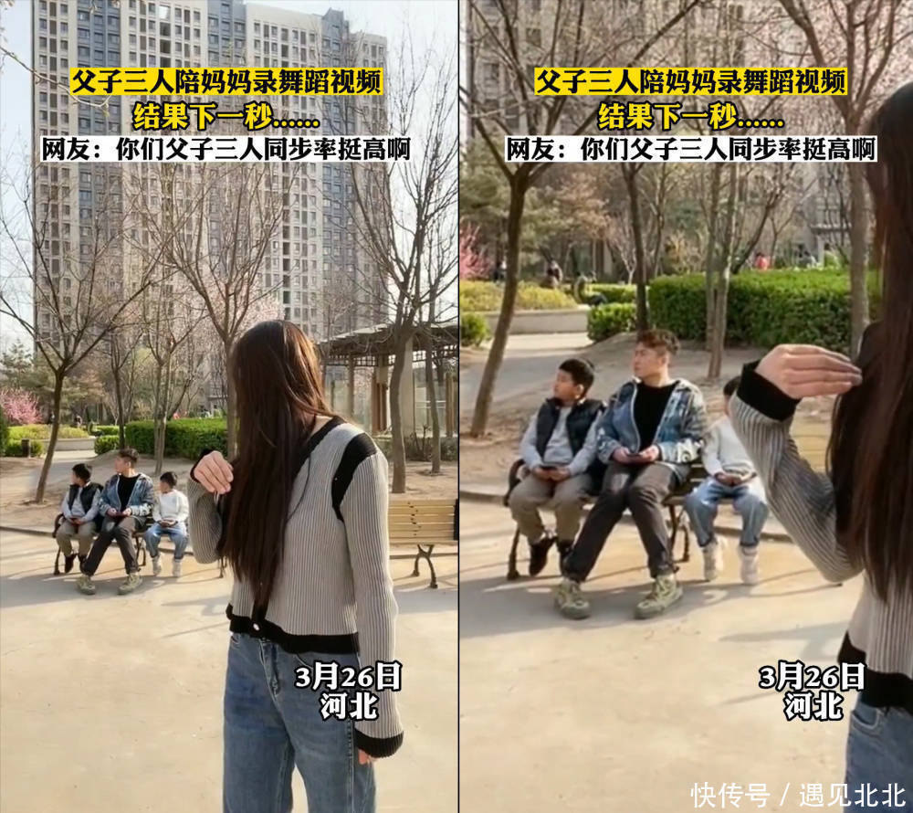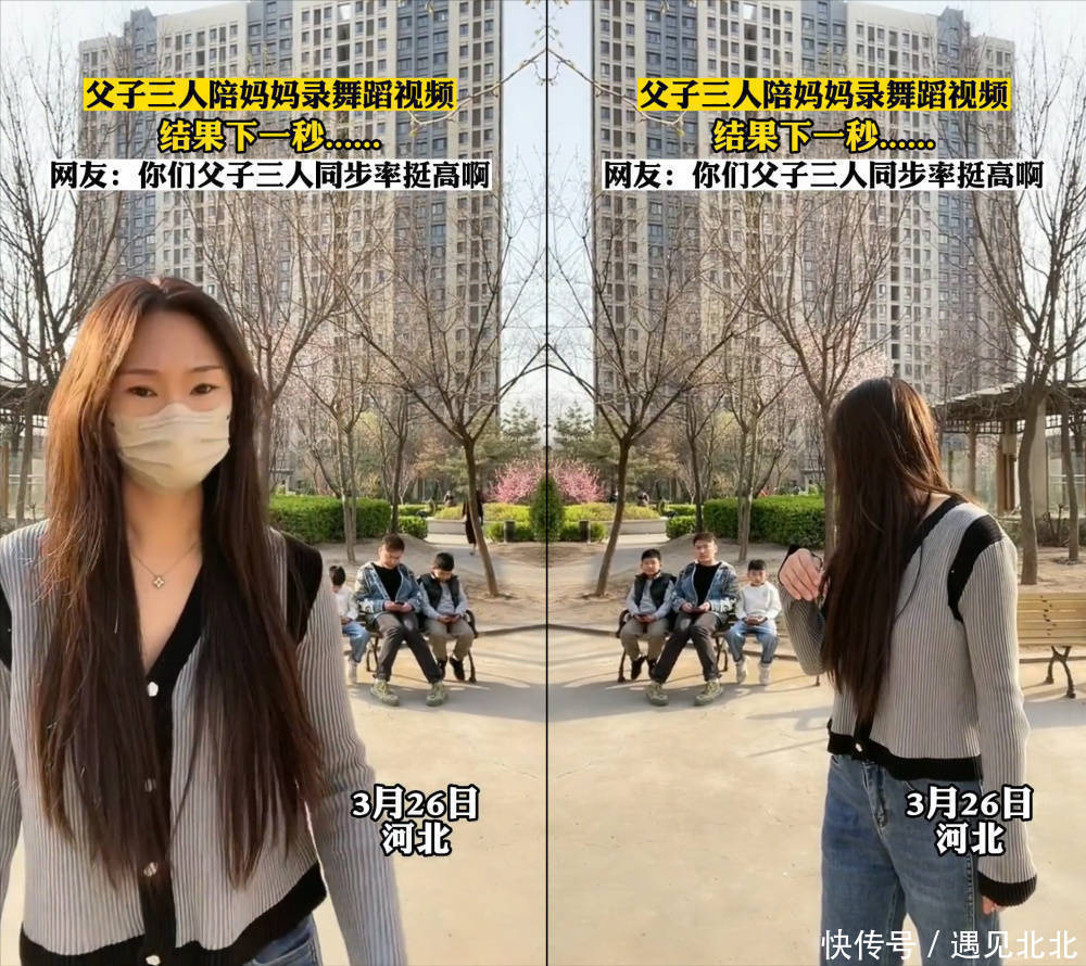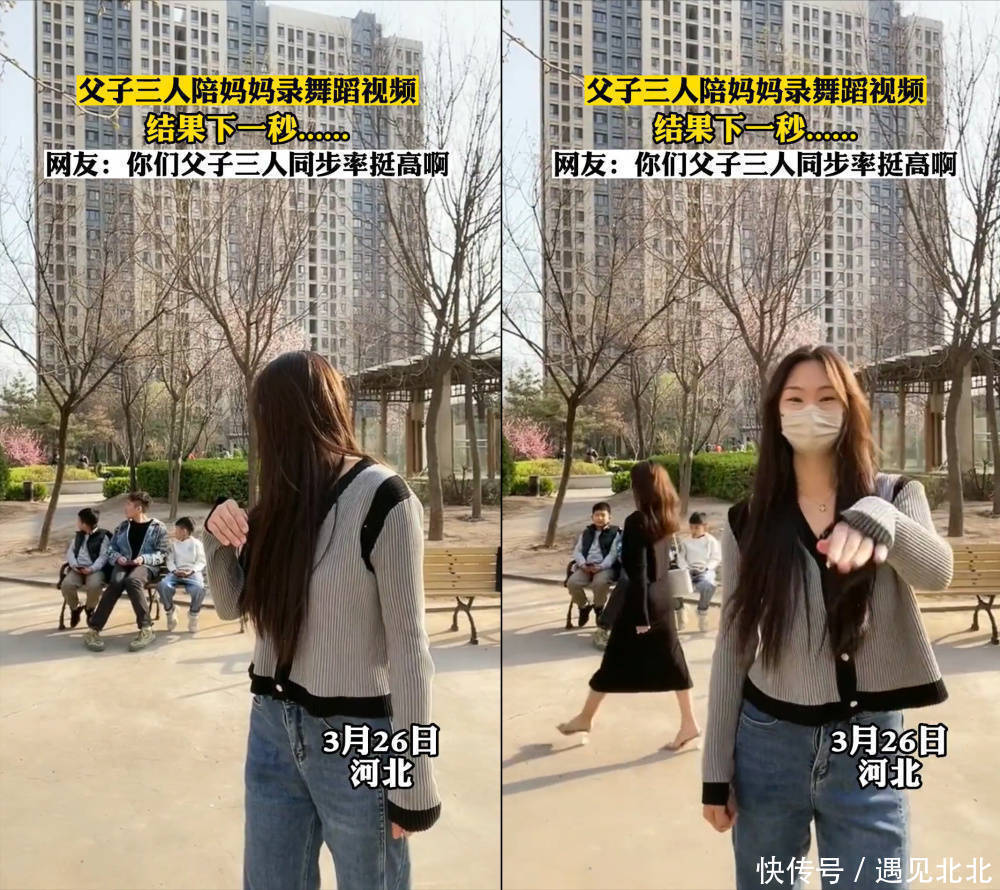 从拍摄的视频显示,画面中这位妈妈正对着镜头秀出优美的舞姿,其身后坐在公园长椅上的父子三人也是乖乖地陪在一旁,这时一名身材高挑颜值出众的美女路人碰巧从他们面前走过,下一秒父子三人的操作把人看傻了。